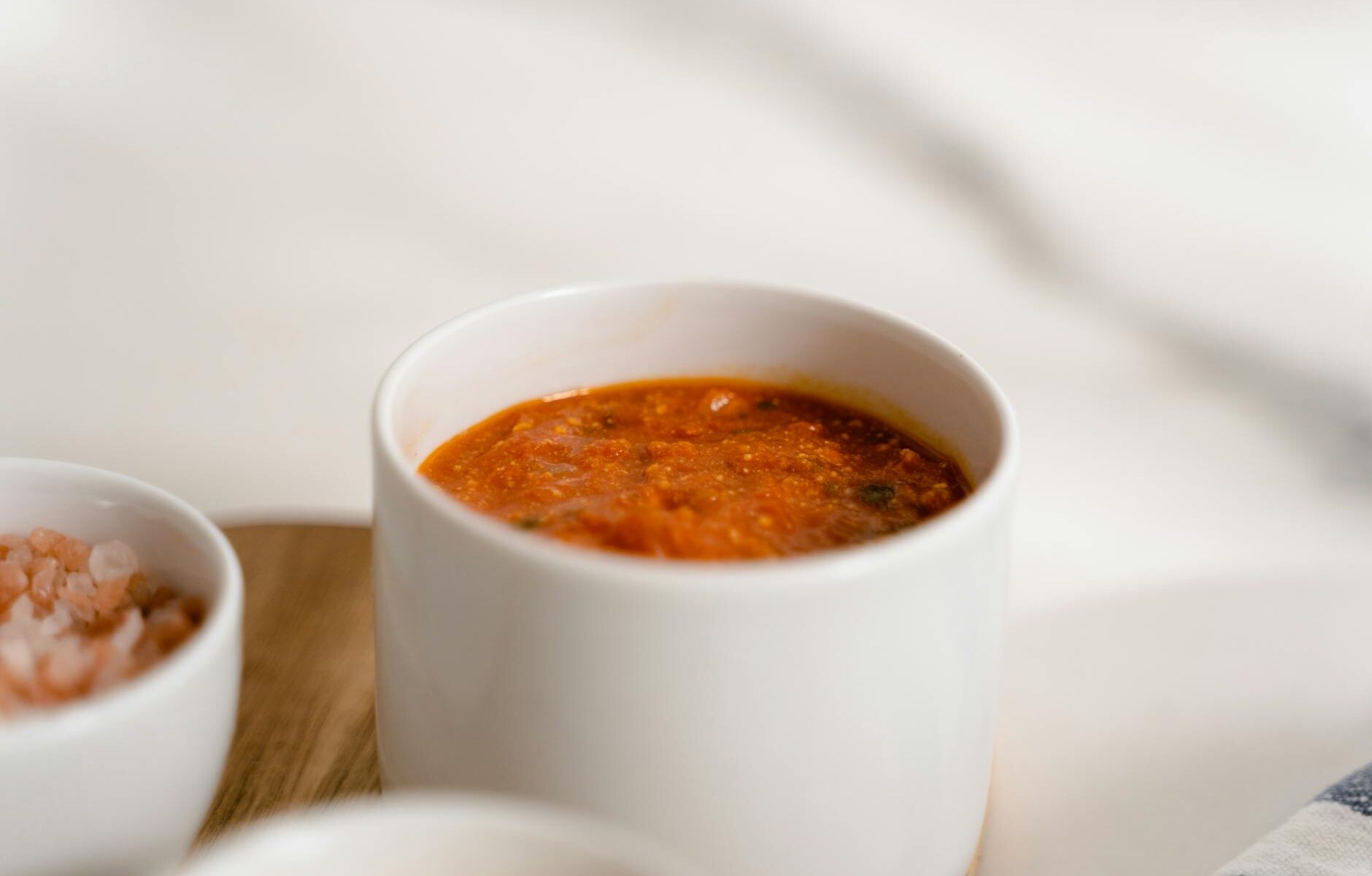 Die Sauce sollte dick genug sein, um auf dem Teig zu bleiben, aber nicht so fest, dass sie sich schlecht verstreichen lässt. Ziel ist eine cremige, streichfähige Textur.