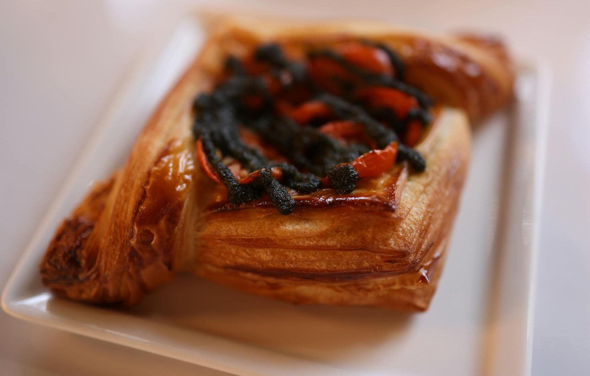 Ich kenne den Reflex, alles noch schnell „ein bisschen mehr“ zu belegen. Aber bei Blätterteig ist weniger oft besser.